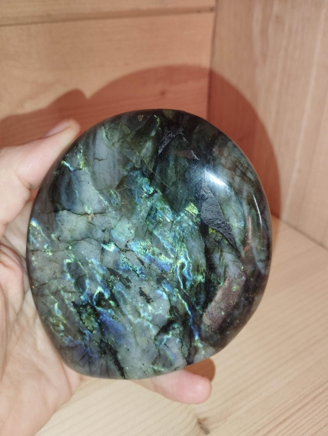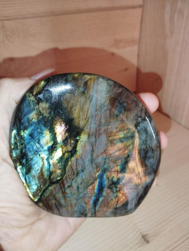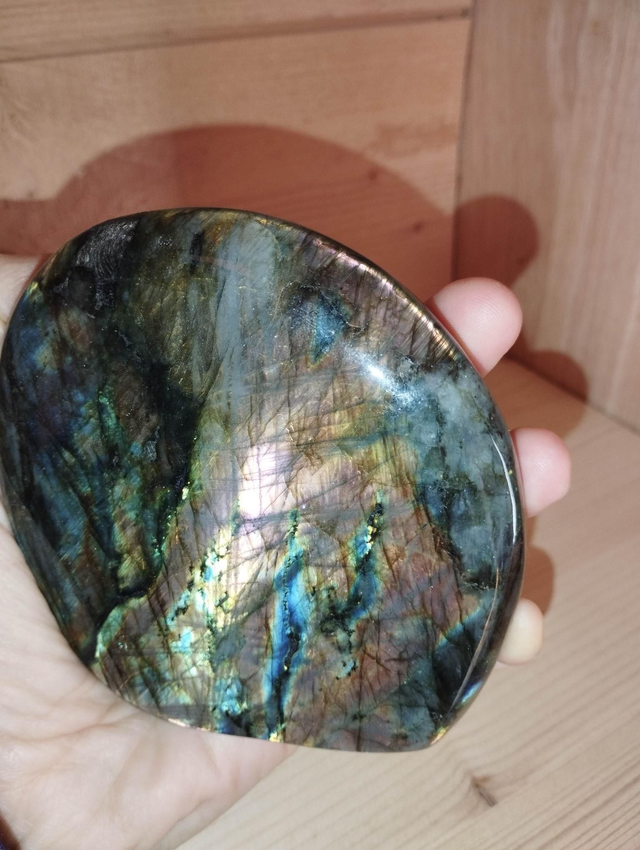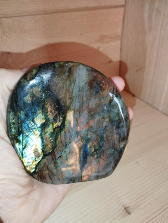 Très belle labradorite de 518 grammes, avec de magnifiques reflets